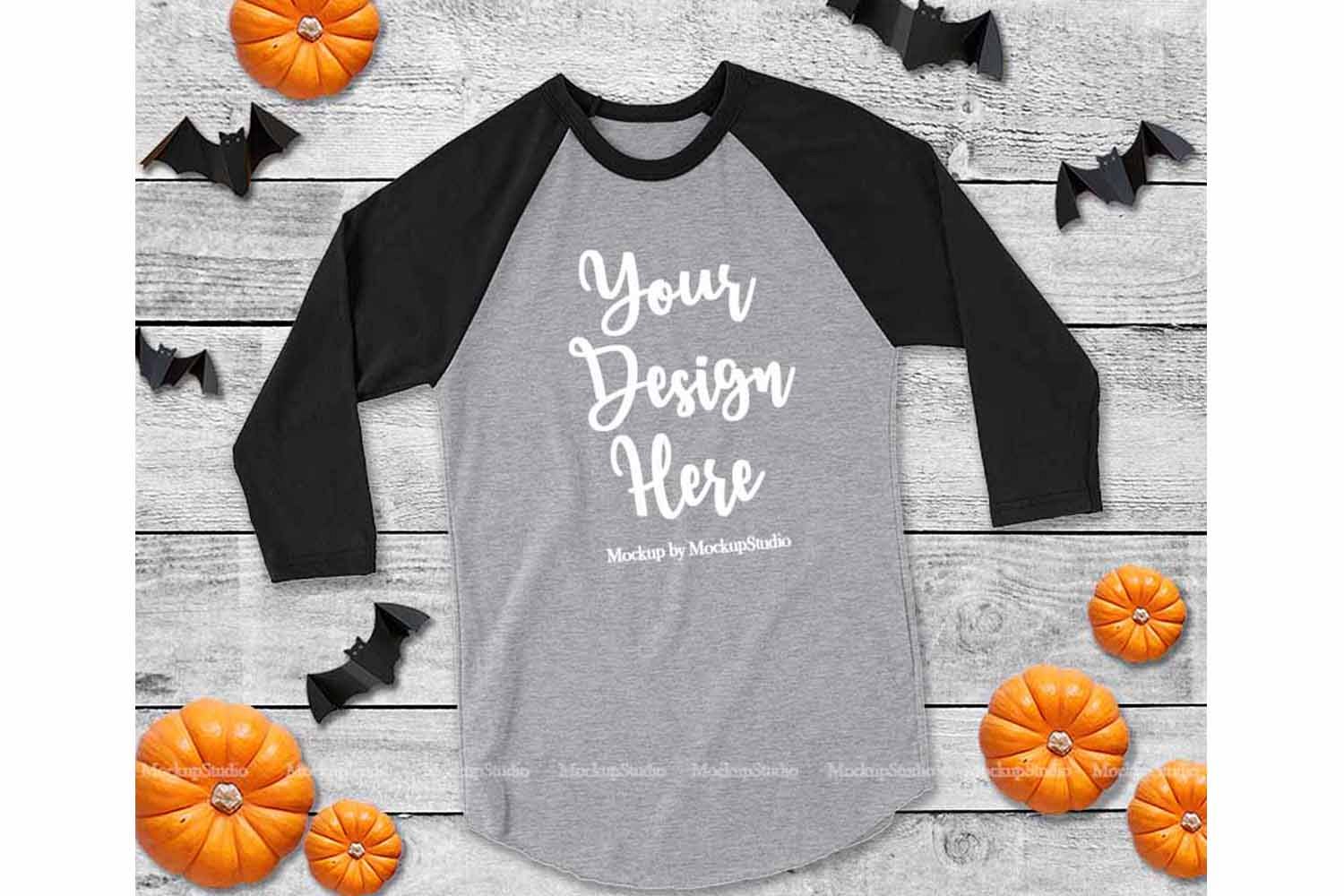 Fall Halloween Raglan Jersey Tshirt Black and Gray Mock Up example image 1