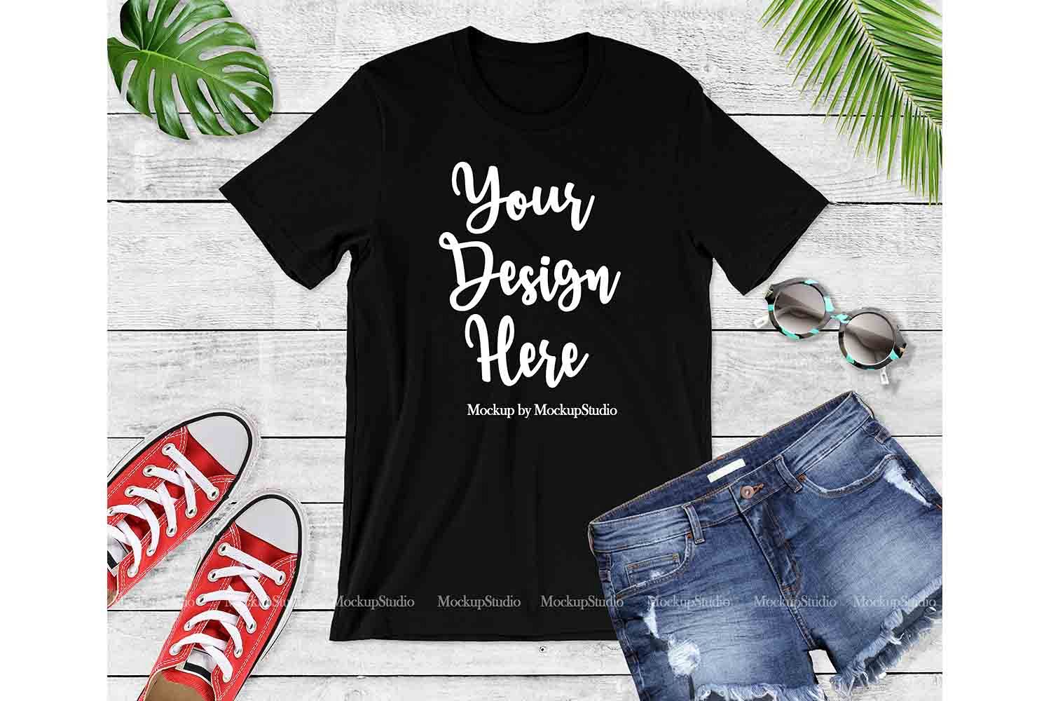 Black Bella Canvas 3001 Women Youth T-Shirt Mock Up Flat Lay example image 1