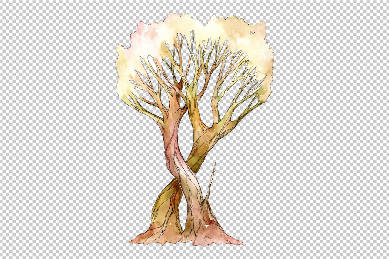 Aquarelle two light brown trees PNG set
