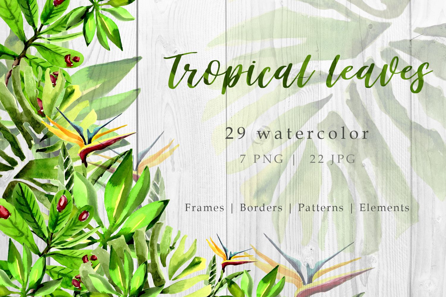 Tropical leaves watercolor set of 29 files. Tropical leaves jungle botanical succulent. Leaf plant botanical garden floral foliage. Ideal material for DIY, wedding invitations, greeting cards, quotes, blogs, posters and more.