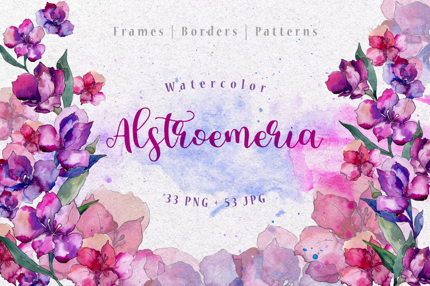 Beautiful purple Alstroemeria flowers watercolor set of 86 files. Floral botanical flower. Ideal material for DIY, wedding invitations, greeting cards, quotes, blogs, posters and more.