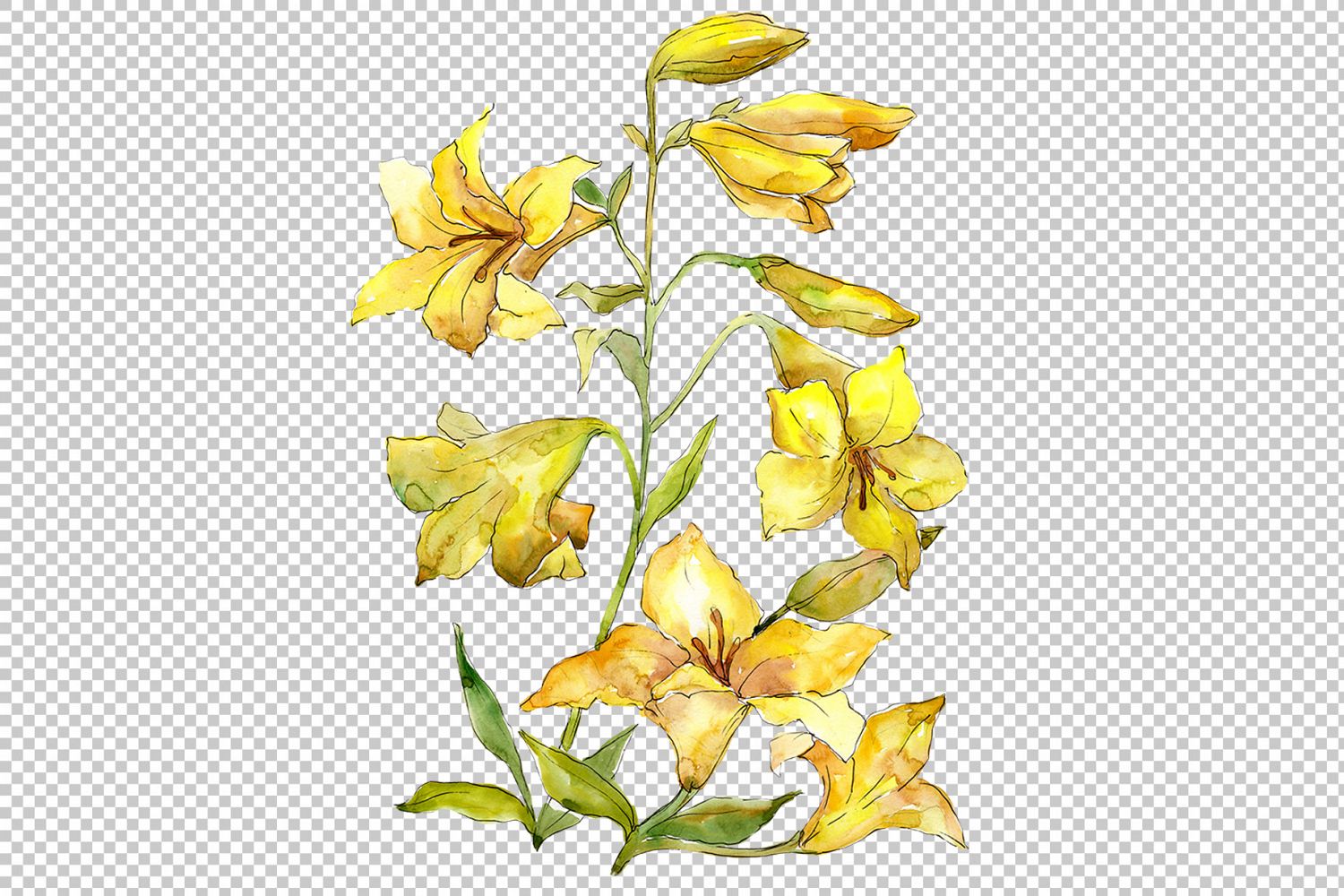 Wildflower bouquet of a yellow lilies flowers watercolor set of 1 file. Floral botanical flower.Flowers on a transparent background. Ideal material for DIY, wedding invitations, greeting cards, quotes, blogs, posters and more.