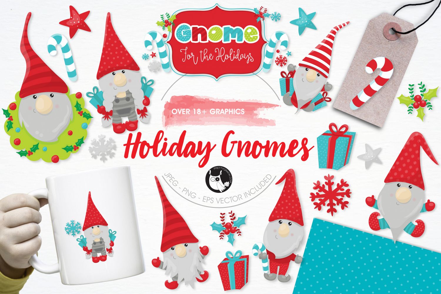 Holiday Gnomes pack features over 18 graphic elements and is perfect for invitations, greeting cards, product design, tags, labels and so much more.Shop more of our products in our shop!