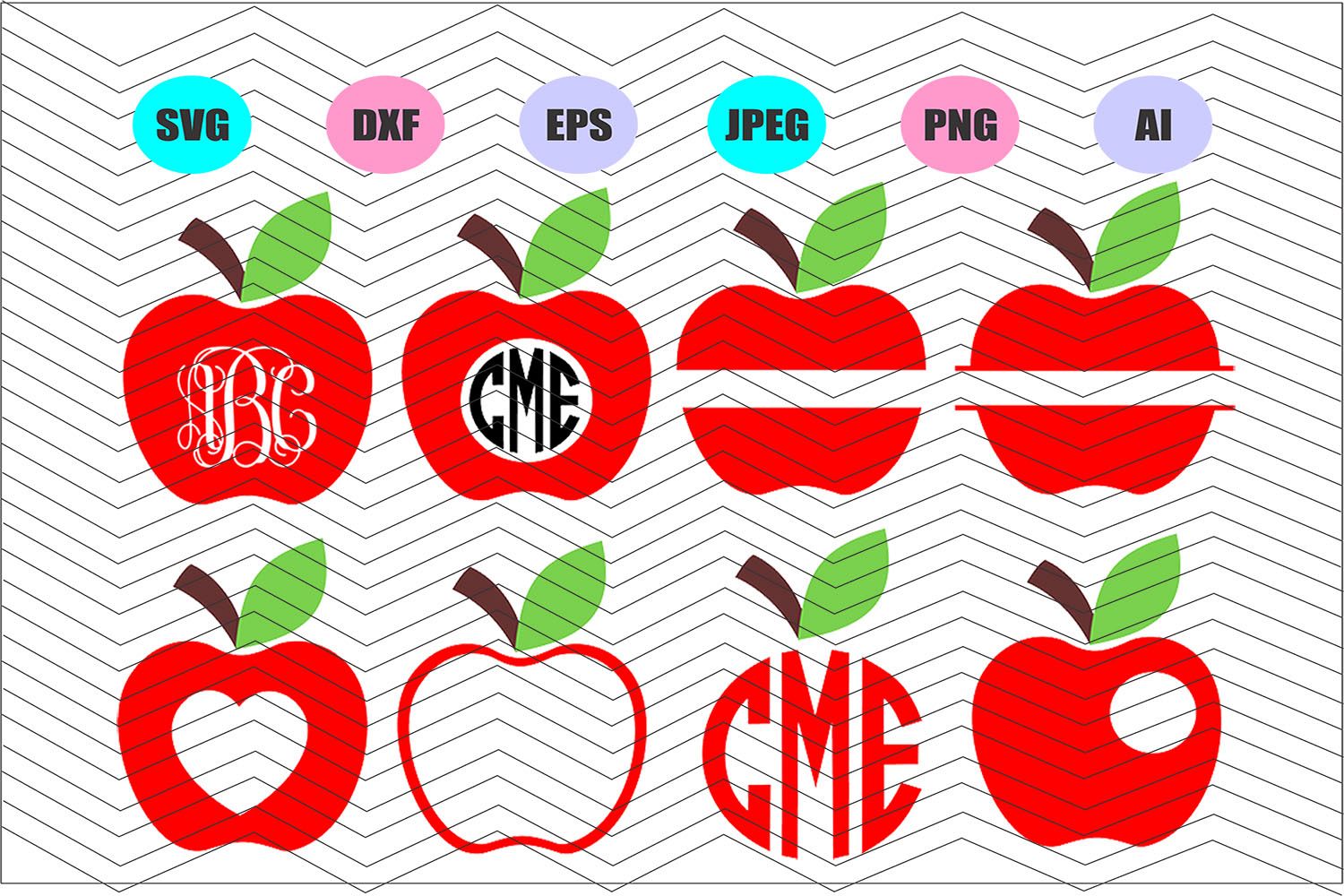 Apple Svg, Apple monogram Svg Dxf Eps Png Jpg Ai Cut Vector