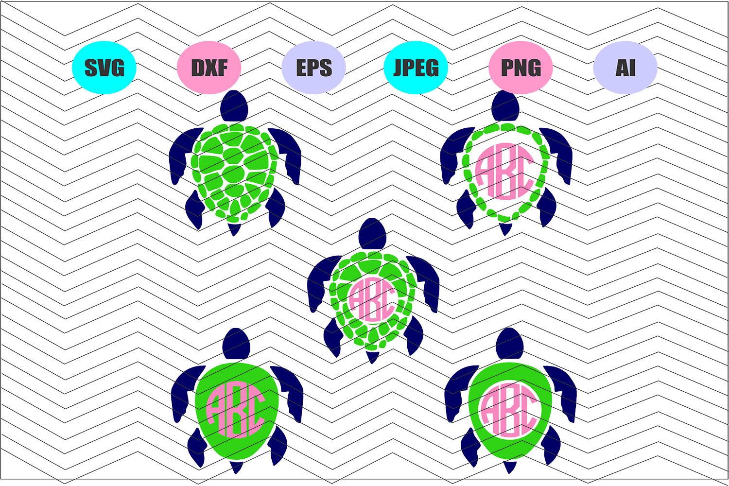 Sea Turtle Svg, Sea Turtle monogram Svg, Cricut Vinyl Decal example image 1