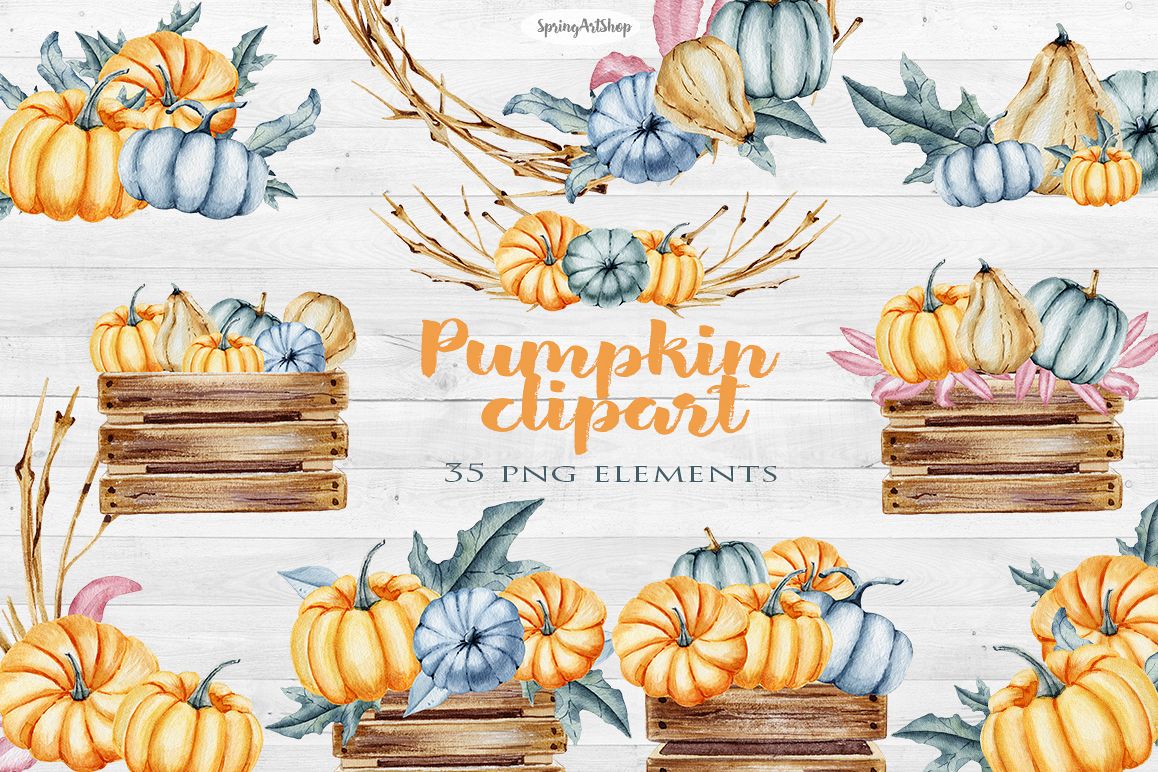 Autumn is coming! New autumn bright clipart with pumpkins, autumn leaves. Watercolor clipart set comes with seasonal graphics that have been hand painted with watercolors, digitally scanned into the computer and created into pieces for you to use on your projects. File included 35 elements: