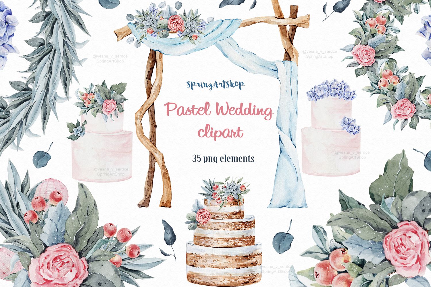 stationery. My Spring and summer Watercolor clipart set comes with
