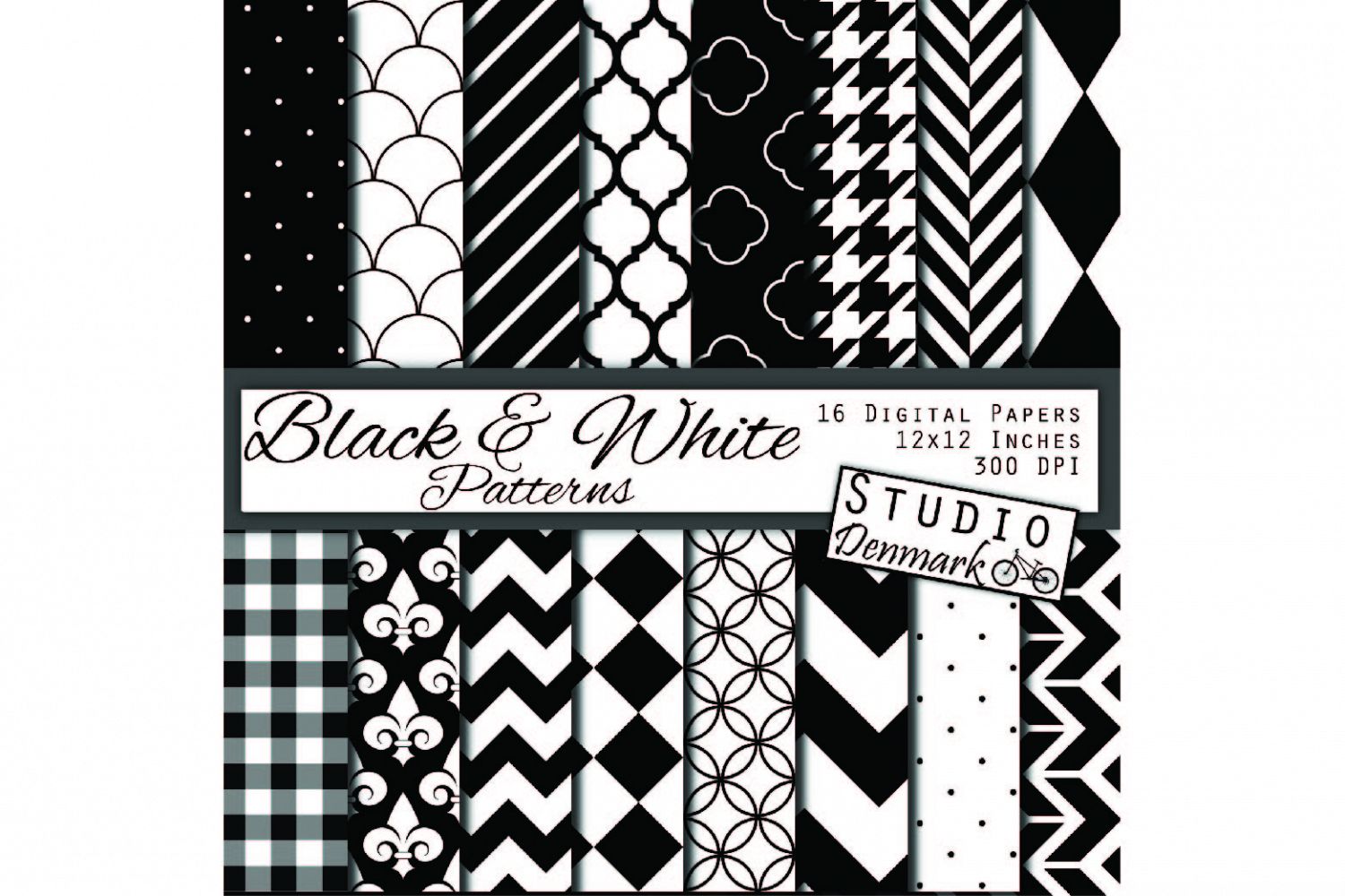 Black and White Patterned Digital Paper - 16 Papers example image 1