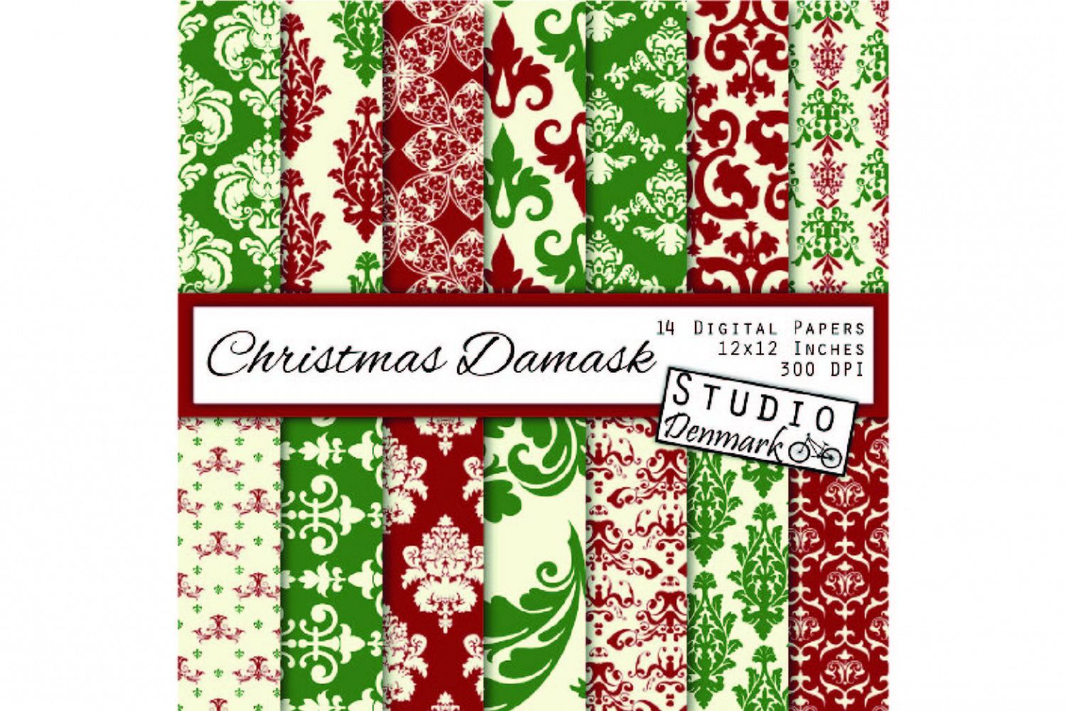 Christmas Damask Digital Paper - Red Green Ivory example image 1