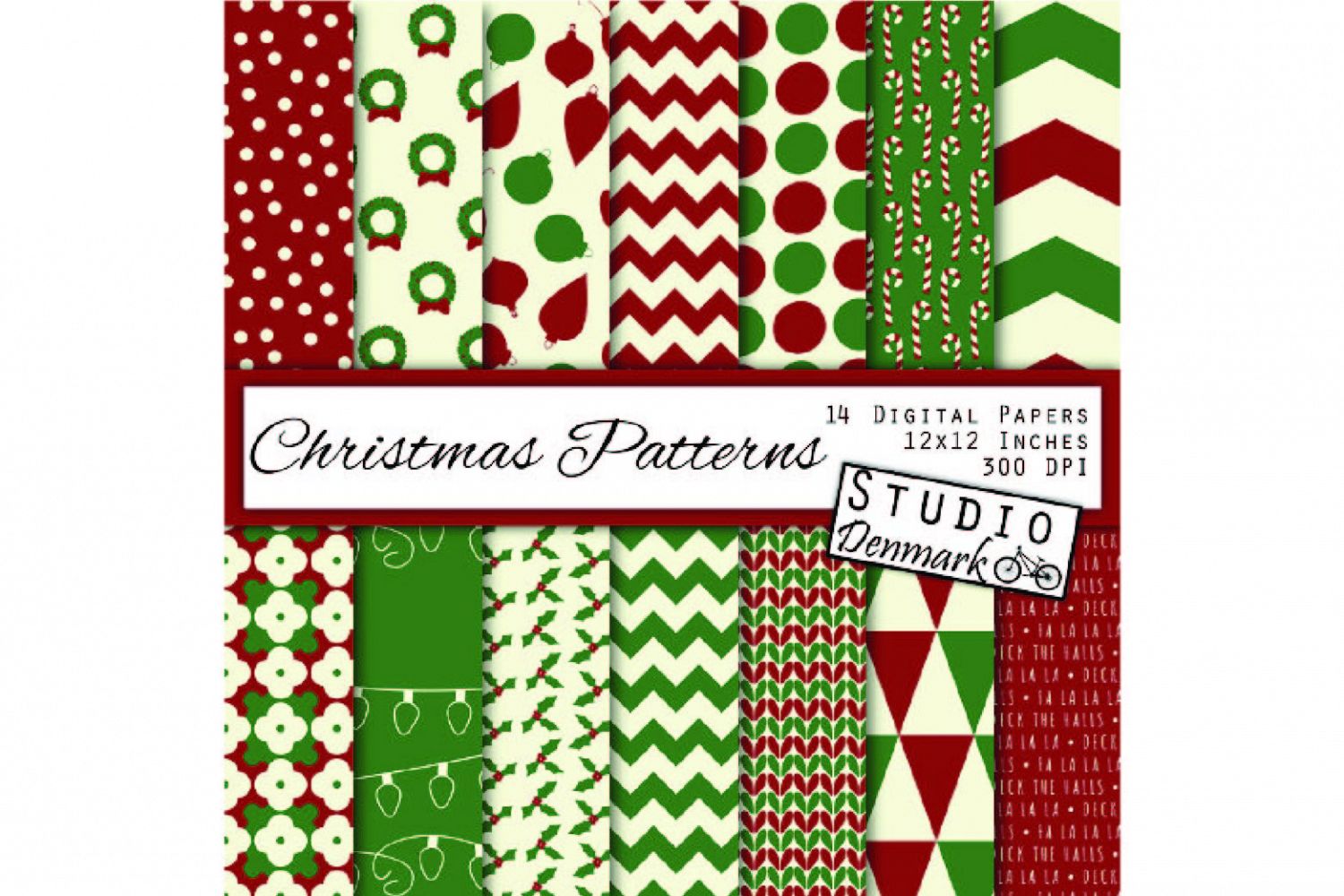 Christmas Digital Paper - Christmas Patterns Red Green Ivory example image 1
