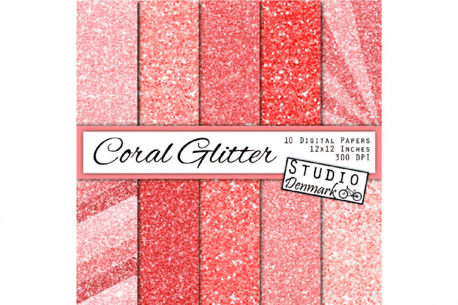 This collection includes 10 high quality 300 dpi digital papers in 12 x 12 inch size. The papers include two glitter/sparkle textures - fine and chunky glitter - each in four shades of coral. Included are also two subtly patterned papers in chevron and starburst on fine coral glitter.