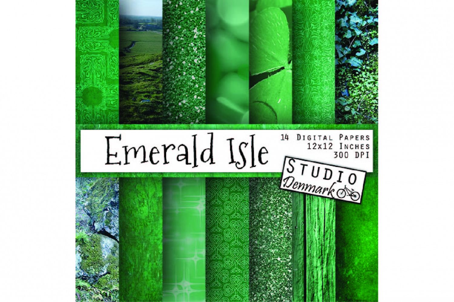 Inspired by a recent trip to Ireland, this collection contains everything that is green and beautiful - glitter, distressed Celtic patterns, grunge, moss, wood, rocks, shamrocks and greenery - including several gorgeous photos and textures I took while I was there. I was amazed by the beautiful countryside and I hope to convey some of that beauty to you :) Includes 14 JPG backgrounds/digital papers in 12x12" size (3600x3600px).