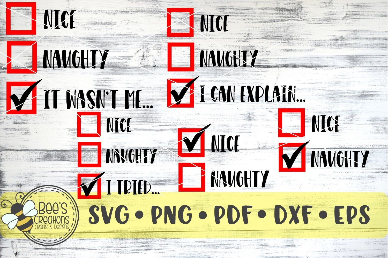 Svg Png Pdf Dxf Eps Bee's Bee's Creations Nice Naughty It