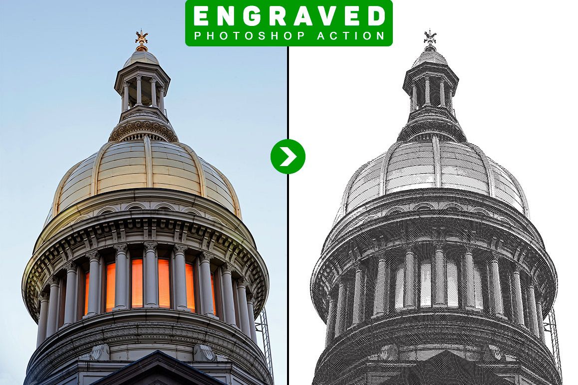 This pack includes "Engraved Photoshop Action" layer action for any image. All the instructions are in the User Guide. text file included