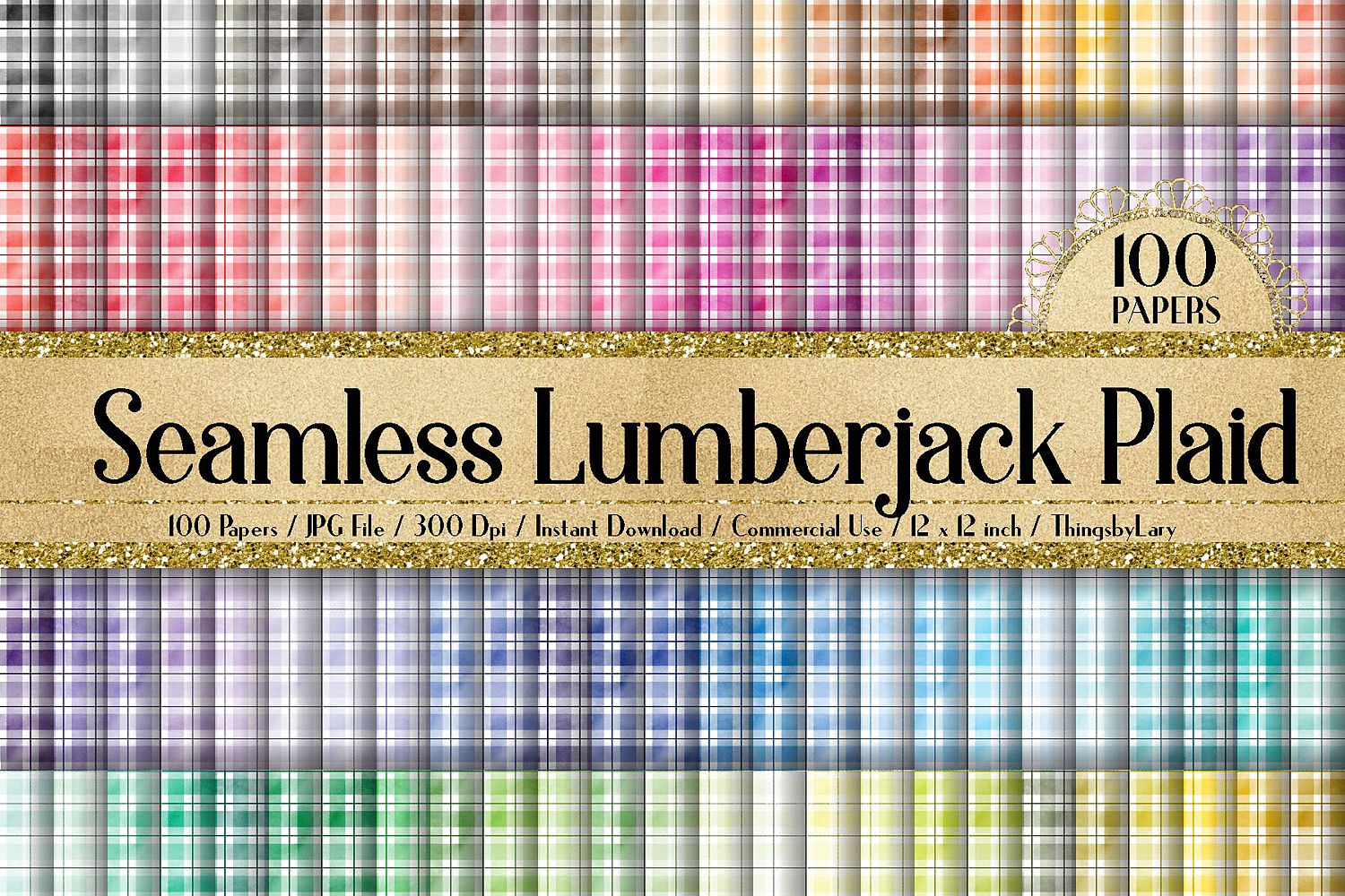 This pack will be available as 1 zip file which contains 100 JPG Images about Seamless Watercolor Lumberjack Plaid Digital Papers in 100 different colors. Each paper was created with in 12 x 12 inches (30.48 cm) and has 300 dpi resolution for the best quality printing. This pack is created with seamless patterns. So you can tile them to get whatever size you like, also be used for fabrics or large prints.