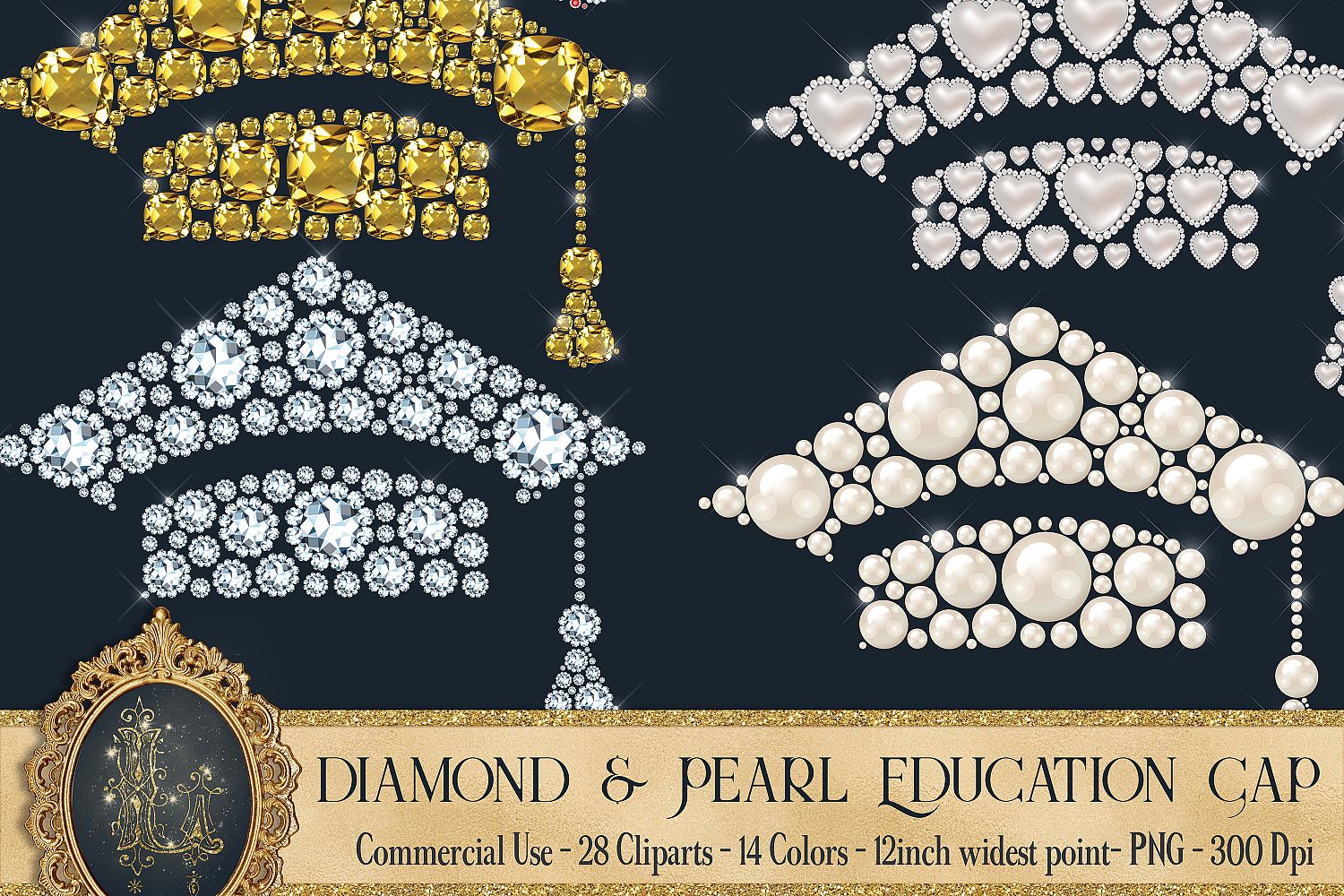 28 Diamond & Pearl Education Clip Arts, Pearl Graduation Kit