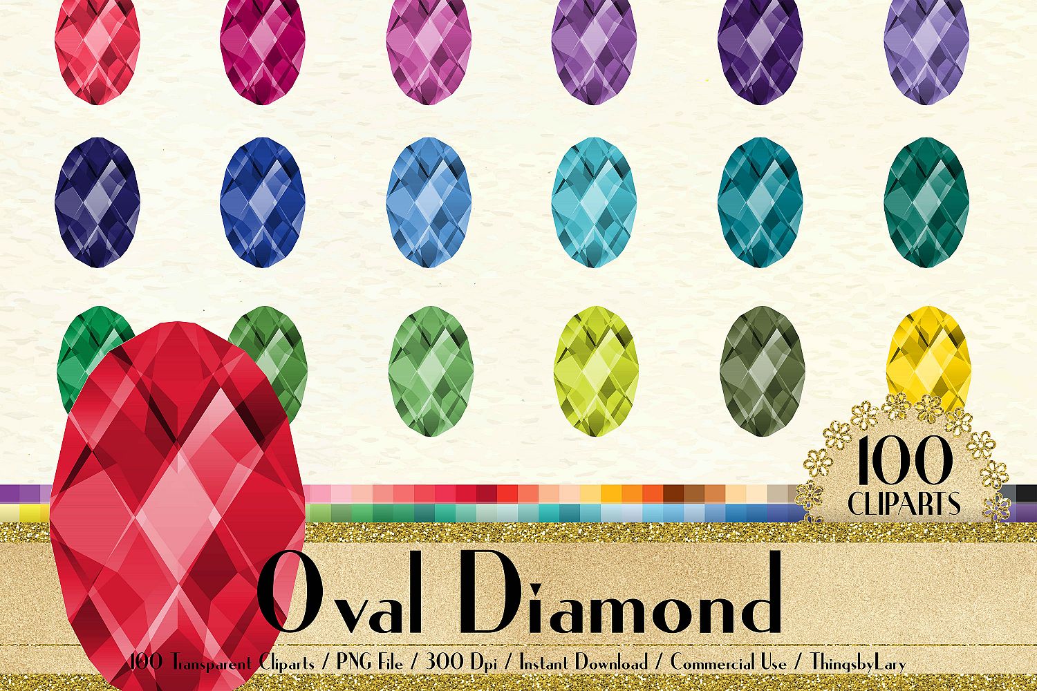 This pack will be available as 1 zip file which contains 100 PNG Images about Oval Shape Diamond Clip Arts, Valentine, Wedding Kit in 100 different colors. Each image has size from 8 to 12 inch at the widest points and has 300 dpi resolution for the best quality printing.