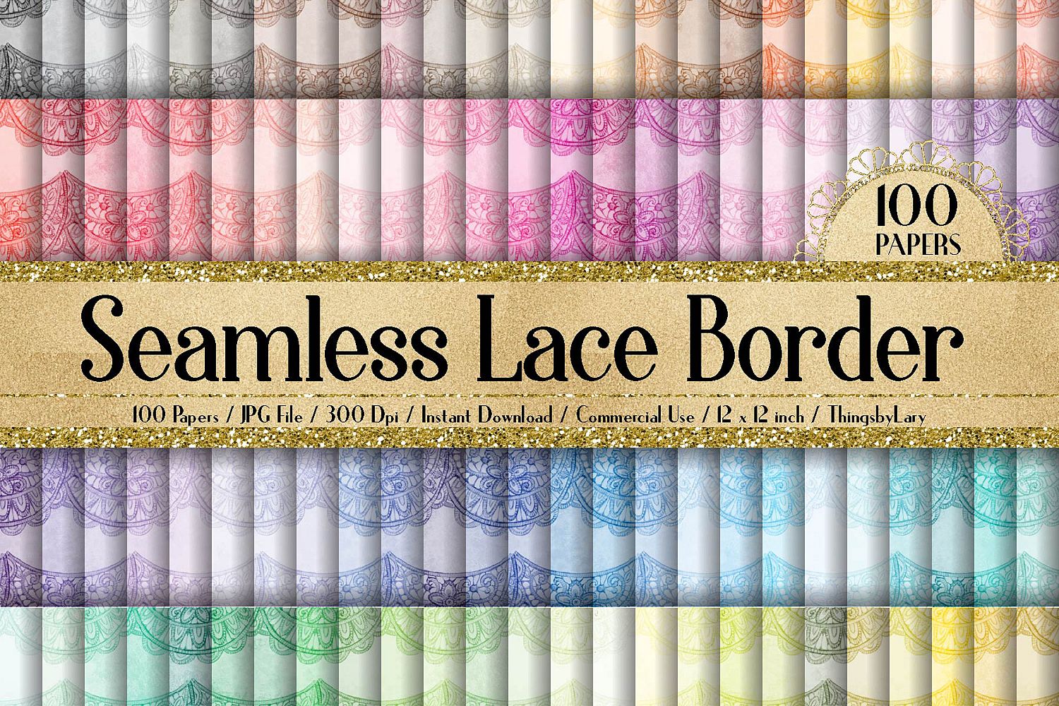 100 Seamless Watercolor Lace Border Digital Papers example image 1