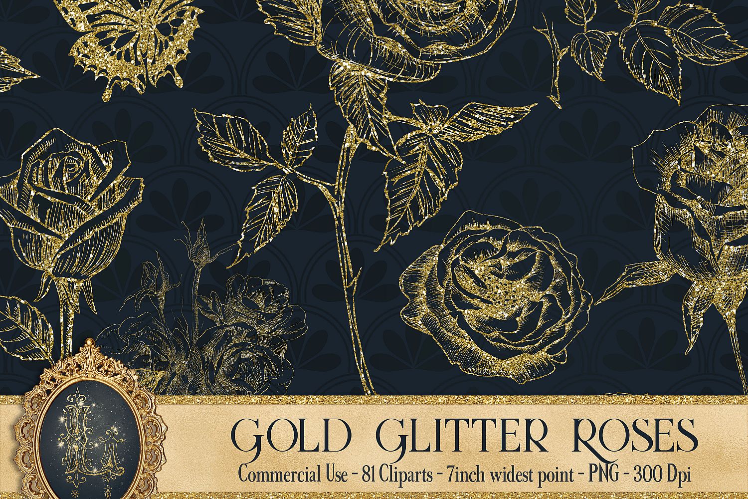 Gold Glitter Rose 81 Clip Arts Set, Fairy Glitter Flowers example image 1