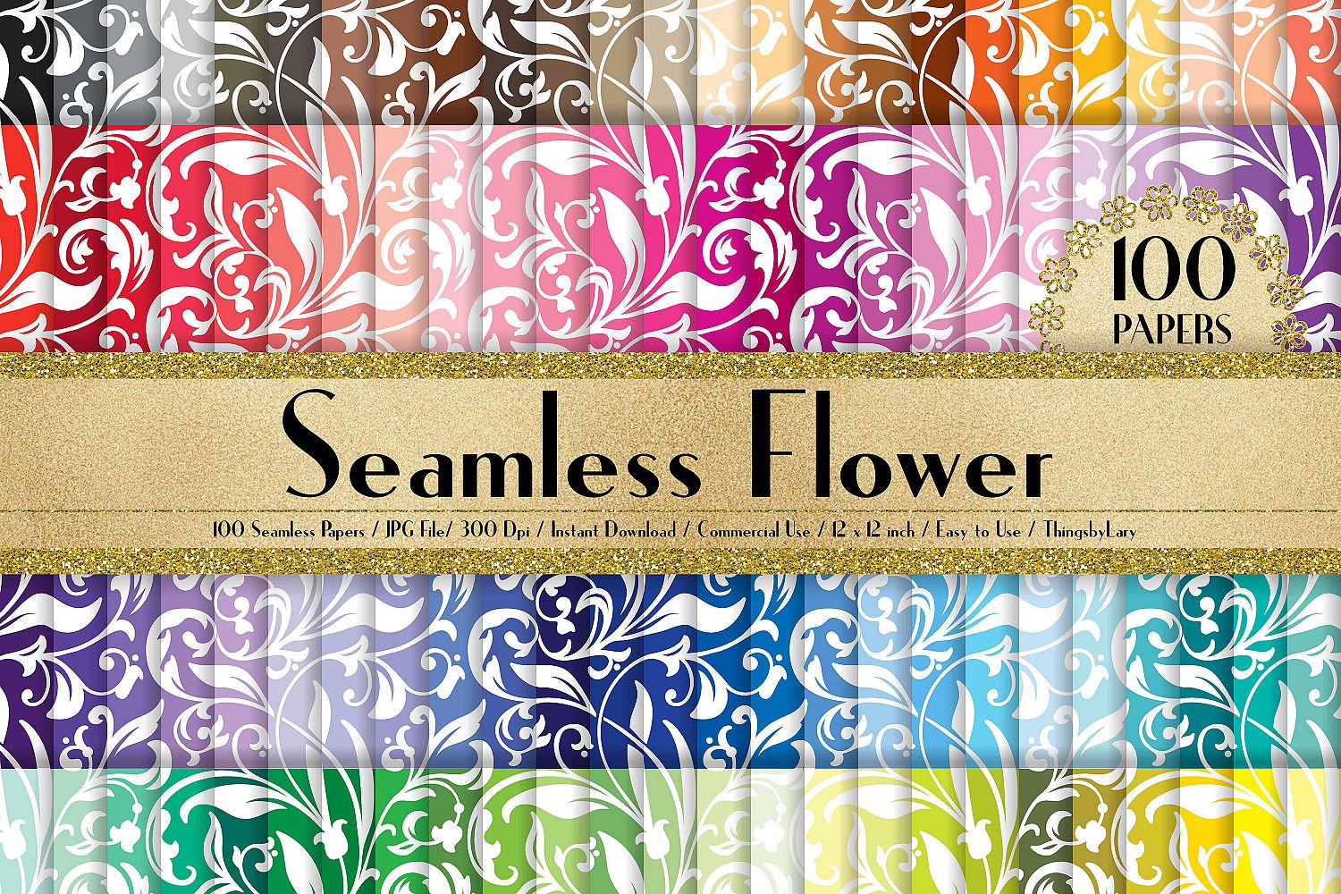 100 Seamless Ornament Floral Digital Papers 12 x 12 inch