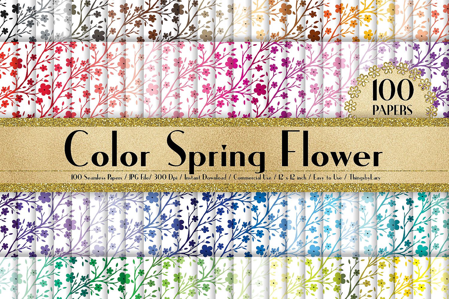 100 Seamless Color Spring Flower Digital Papers