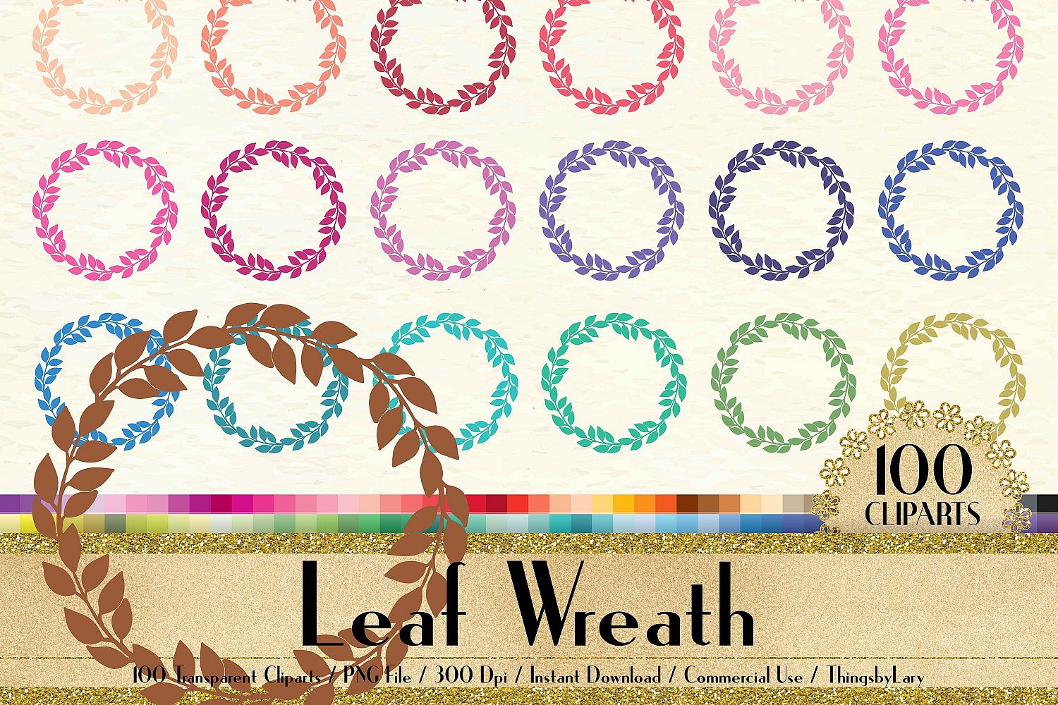 This pack will be available as 1 zip file which contains 100 PNG Images about Leaf Wreath Clip Arts, Botanical Wreath Clip Arts in 100 different colors. Each image has size from 8 to 12 inch at the widest points and has 300 dpi resolution for the best quality printing.