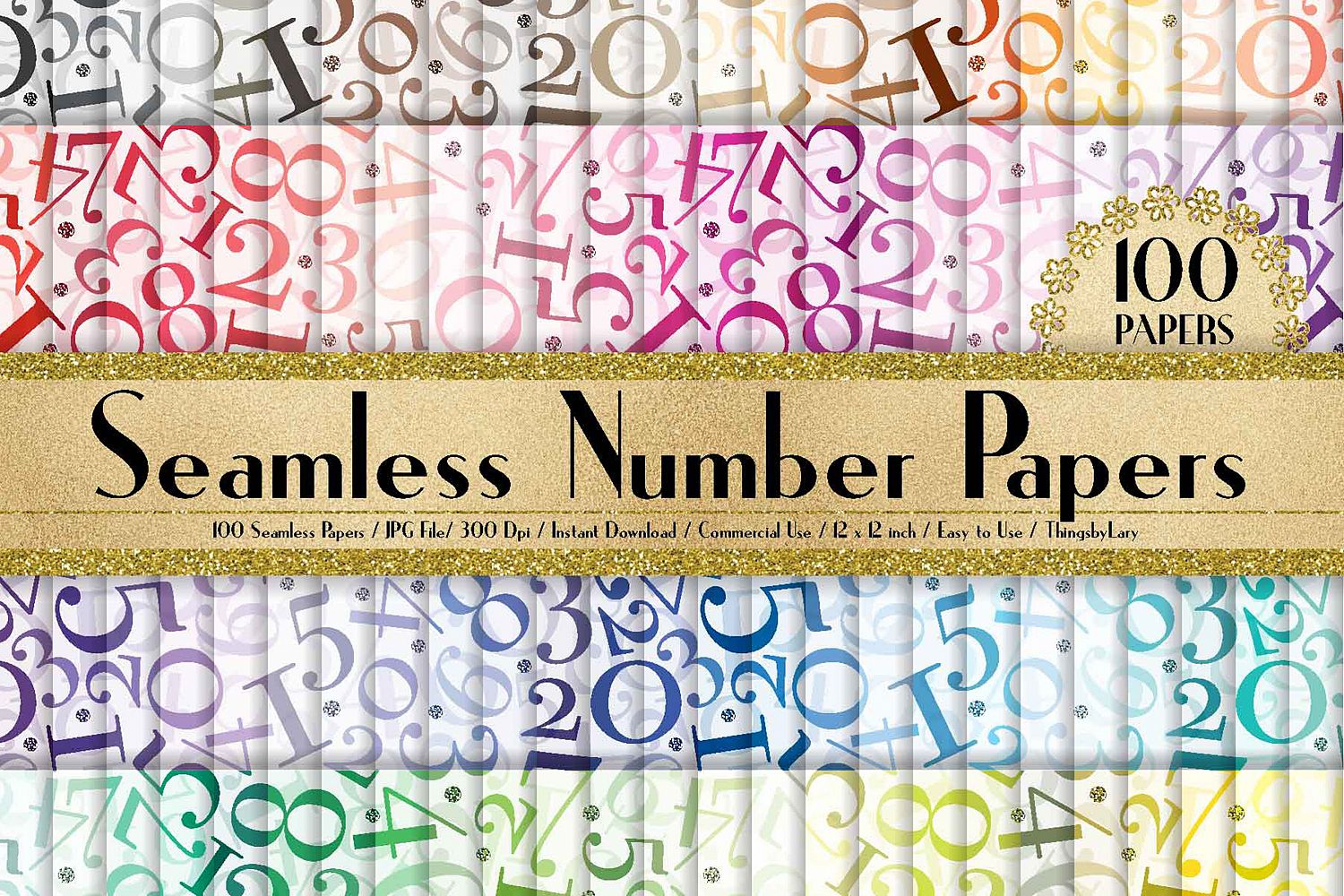 100 Seamless Number with Glitter Dot Digital Papers