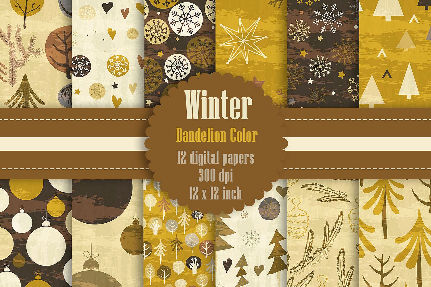12 Winter Pattern Digital Papers in Dandelion Theme Color