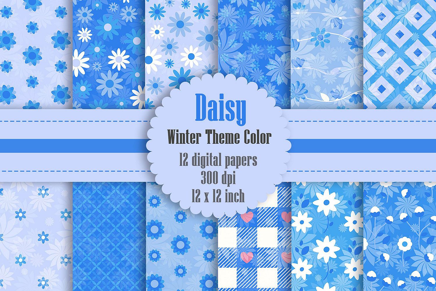 12 Daisy Flower Digital Paper in Powder Blue Theme