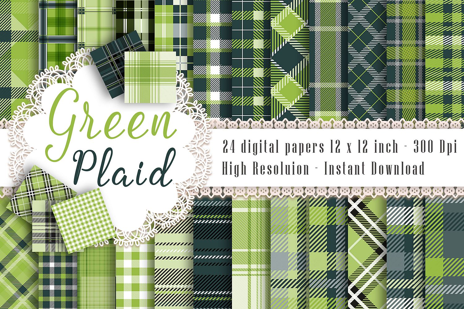 This pack will be available as 1 zip file which contains 24 JPG Images about Seamless Greenery Plaid Digital Papers, Tartan, Gingham. Each paper was created with in 12 x 12 inches (30.48 cm) and has 300 dpi resolution for the best quality printing. This pack is created with seamless patterns. So you can tile them to get whatever size you like, also be used for fabrics or large prints.