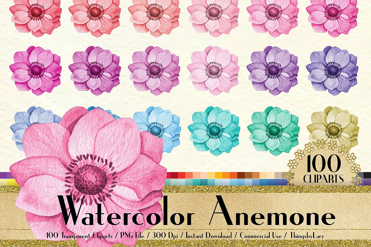 Similar Design Products to 100 Watercolor Anemone Flower Clip Arts, Botanical Garden