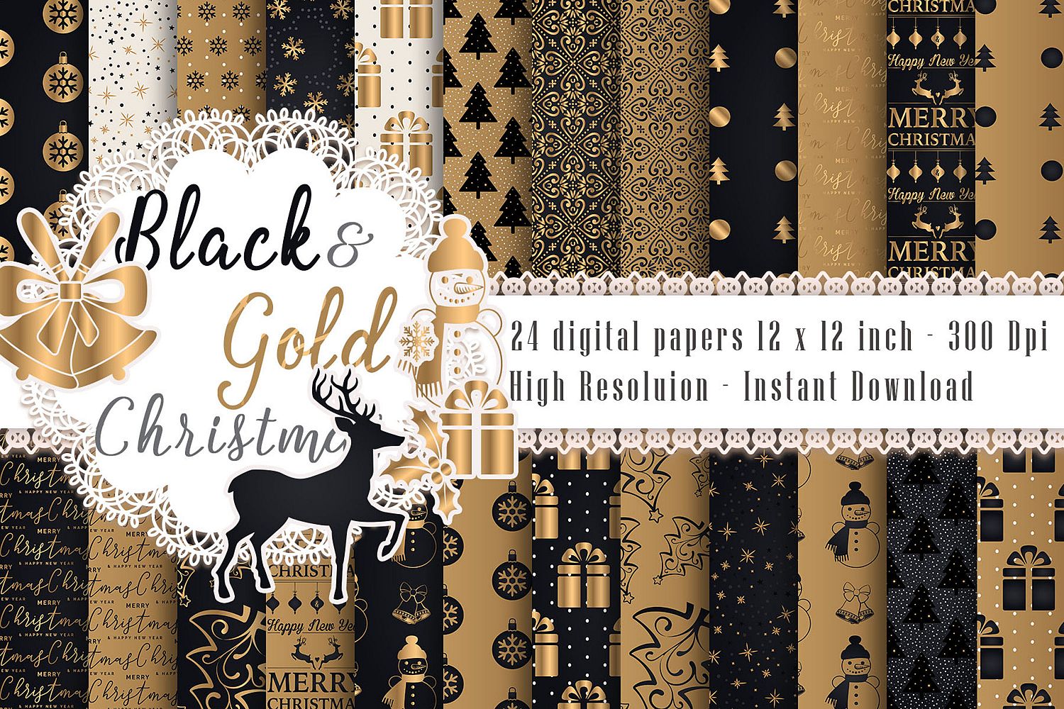 Similar Design Products to 24 Luxury Black and Gold Christmas Holiday Digital Papers