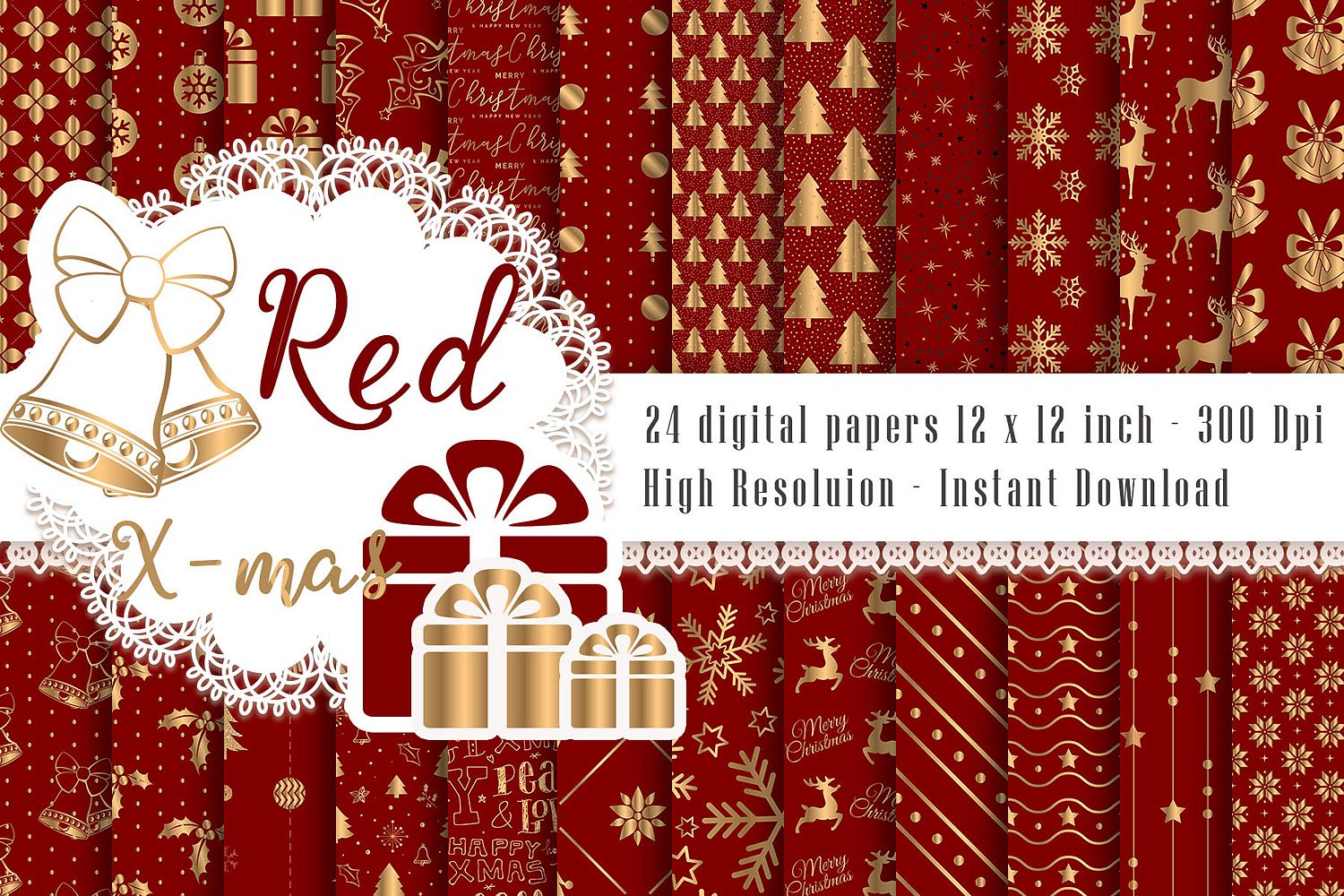24 Luxury Red and Gold Holiday Christmas Digital Papers