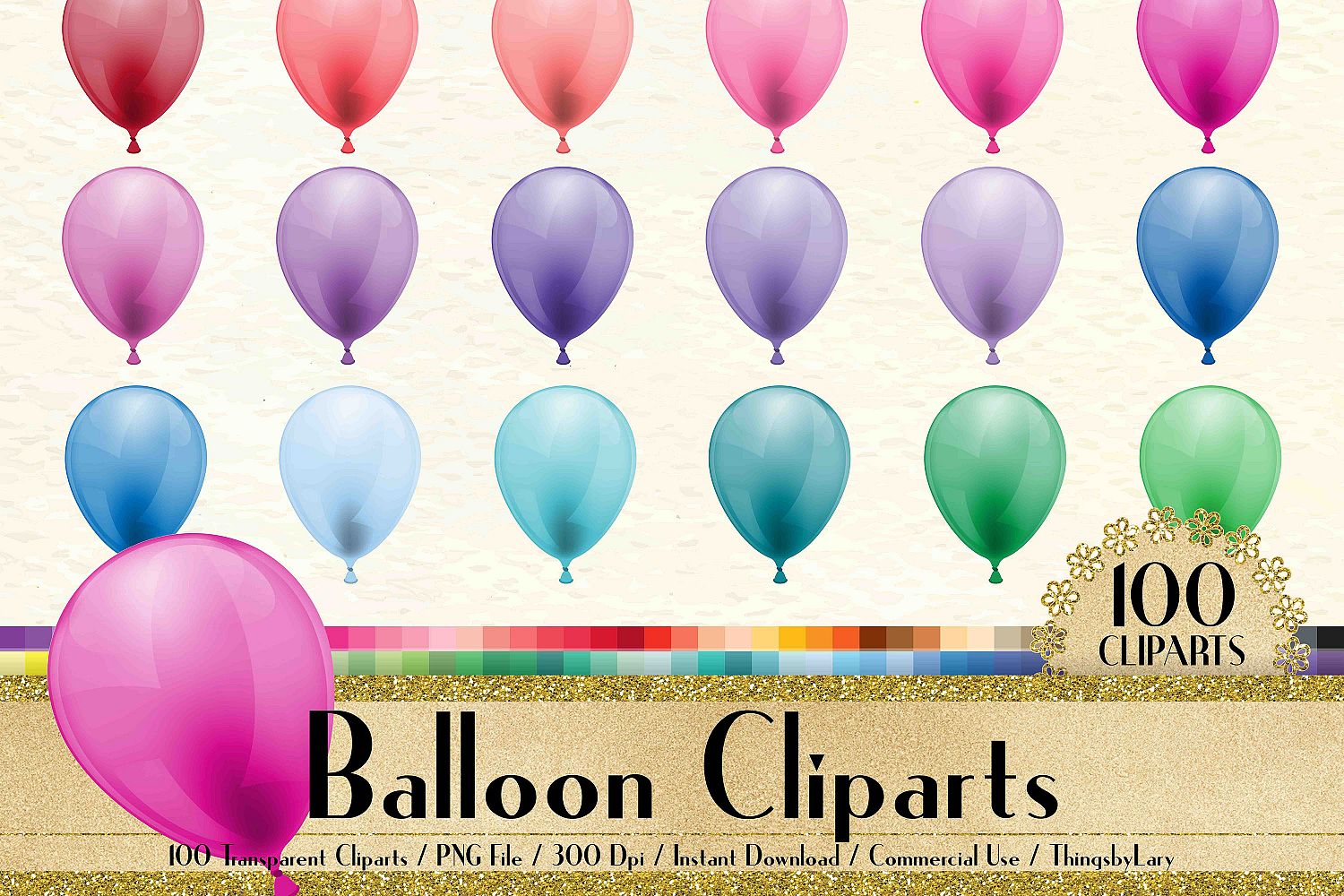 This pack will be available as 1 zip file which contains 100 PNG Images about Transparent Luxury Balloon Clip Arts, Party Balloons in 100 different colors. Each image has size from 8 to 12 inch at the widest points and has 300 dpi resolution for the best quality printing.