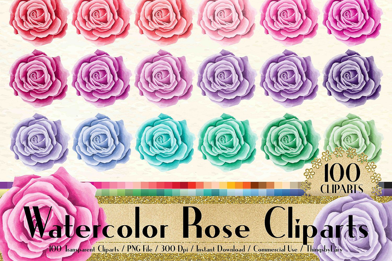 100 Watercolor Roses Clip Arts, Romantic Valentine Scrapbook example image 1
