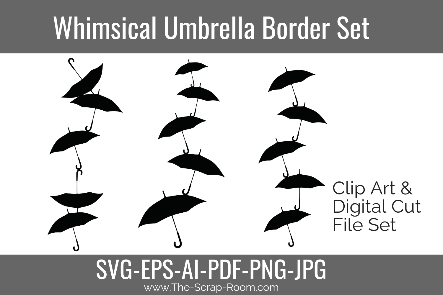 Whimsical Umbrella Border Clip Art & Digital Cut File Set