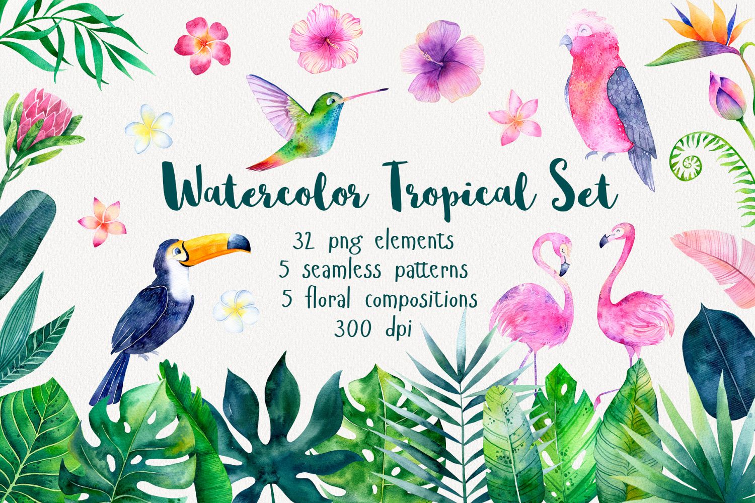 - 5 tropical birds (toucan, 2 flamingo, cockatoo, hummingbird)