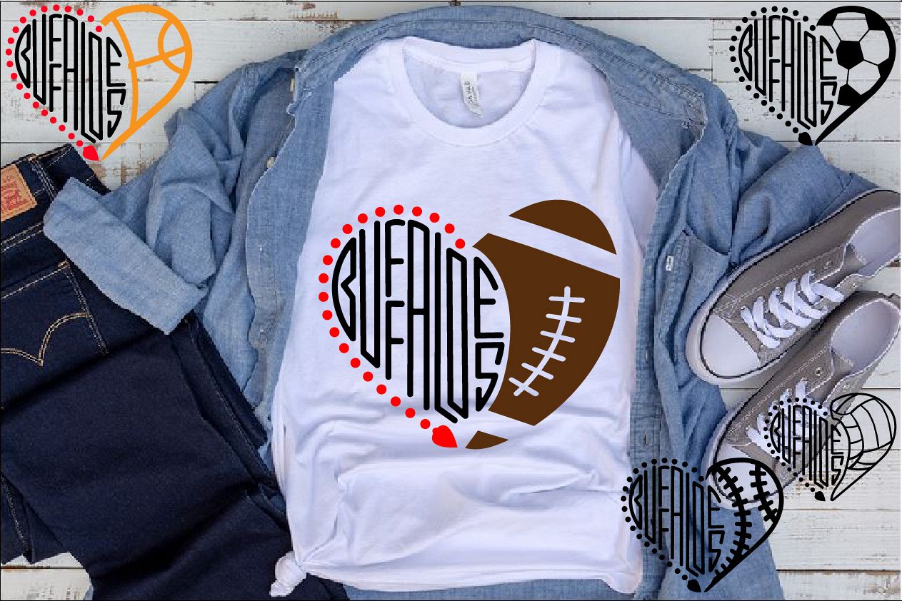 Buffaloes Sport Heart SVG School Spirit football 972s