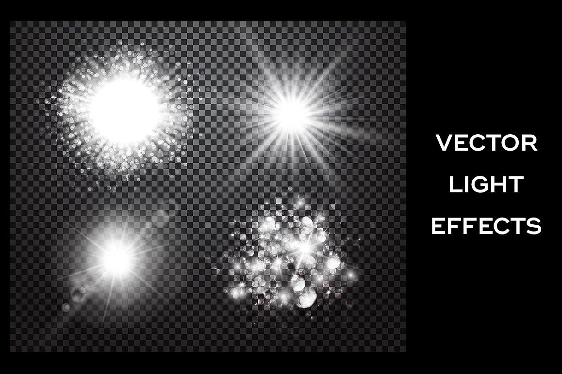 Set of vector light effects with transparency isolated on plaid background.